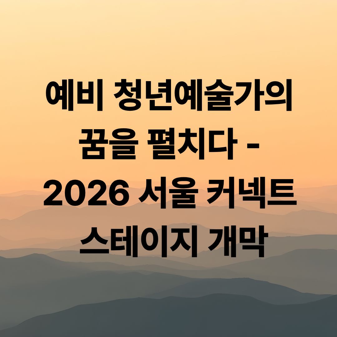 서울문화재단이 청년예술가들의 첫 무대를 지원하는 ‘2026 서울 커넥트 스테이지’를 오는 1월 26일부터 개최한다. 🎭 이번 행사는 연극·무용·전통예술 등 다양한 장르에서 활동을 시작하는 예비 청년예술가들의 사회 진입을 돕기 위해 마련됐다. 예술계의 미래를 이끌 젊은 세대들이 서울 무대 위에서 새로운 출발을 예고하고 있다.